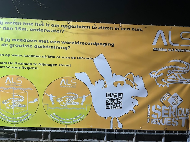 In het kader van 3FM Serious Request zet Duikteam de Kaaiman uit Nijmegen zich dit jaar in om geld op te halen voor Stichting ALS Nederland.
