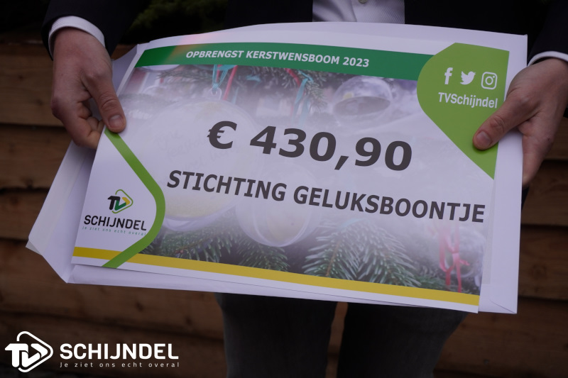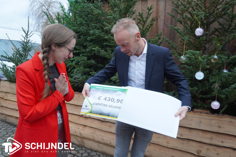 TVSchijndel reikt cheque Kerstwensboom uit aan Stichting Geluksboontje