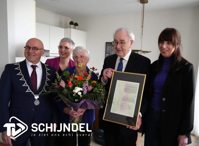 Op woensdag kwam burgemeester van Rooij bij hen langs om hen te feliciteren met dit heuglijke feit. Onder het genot van koffie en gebak overhandigde hij hen de oorspronkelijke trouwakte. Ook TVSchijndel was bij dit bezoek aanwezig en maakte bijgevoegde video. (info en foto's: familie Sanders)