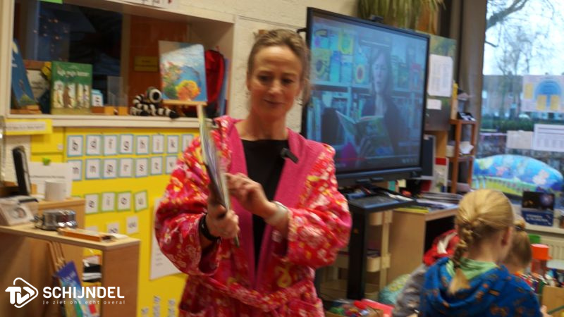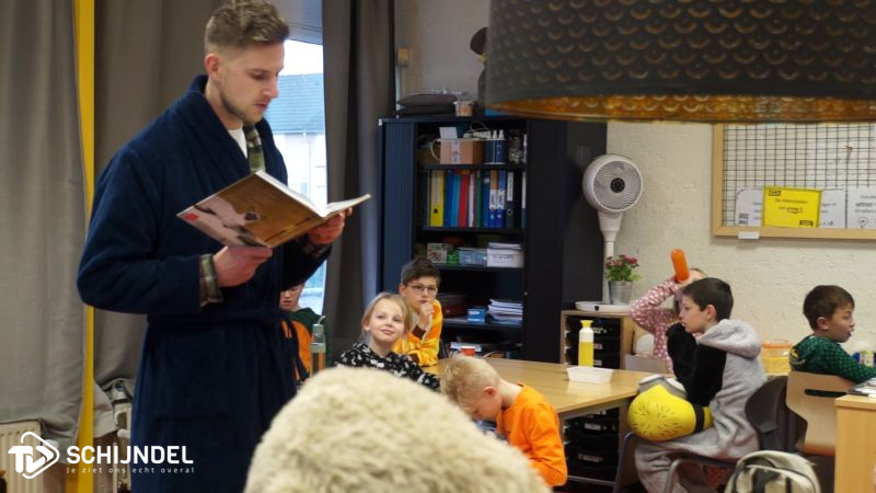 Alle leerkrachten kwamen ook in pyjama naar school en zij lazen voor in hun eigen klas. Bekijk ook de video.