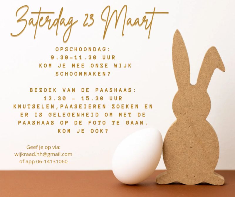 Voor het eerst organiseren ze ook de jaarlijkse terugkomende Paasactiviteit op zaterdagmiddag 23 maart. Deze middag start om 13.30 uur met een nieuwe paasknutselactiviteit voor jong en oud in de Vink. Tevens kunnen kinderen met de paashaas op de foto. Zij sluiten af met paaseieren zoeken in de wijk.