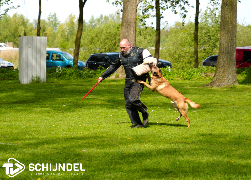 Na een korte pauze was het tijd voor het spectaculaire manwerk. De honden waren in hun element en het was genieten van mooie aanvallen op de pakwerkers met mooie volle beten en ook netjes loslaten op commando. Ook hier blijft de samenwerking tussen geleider en hond essentieel.
