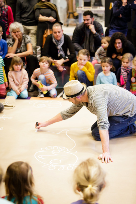 Kleurfeest Op de zondag is er Het Kleurfeest, een muzikaal tekenavontuur! Deze interactieve voorstelling voor kinderen van 2 tot 12 jaar wordt aangeboden door Blauwe Kei, Theater aan de Noordkade. Op de grond ligt misschien wel de grootste tekening die je ooit hebt gezien. Kinderen werken aan een enorm kunstwerk, waarbij ze worden begeleid door een tekenaar (die zelfs ondersteboven kan tekenen!). Samen tekenen ze een groot, kleurrijk verhaal. Een zanger/gitarist speelt live liedjes uit de hele popgeschiedenis. Een ontspannen tekenmoment met fijne muziek!
