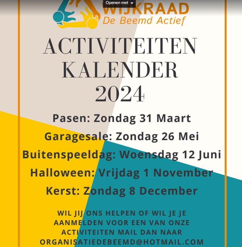 Kom gezellig naar de garagesaleGepubliceerd: woensdag 22 mei 2024 10:36Schijndel - Op zondag 26 mei is er een garagesale, georganiseerd door de Wijkraad Beemd Aktief. Deze markt is van 10.00 tot 14.00 uur.Er staan extra kramen op het Beemdveld. Whatsapp Vorige Volgende