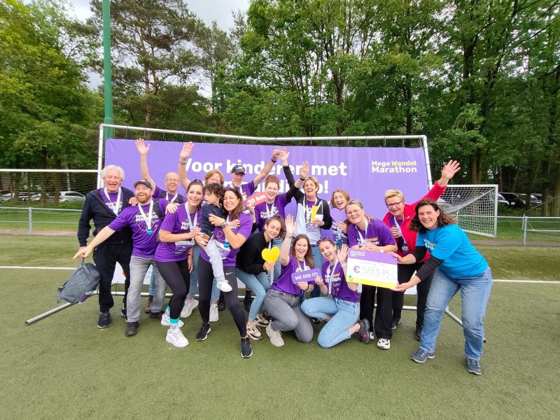 De teamleden hebben een fijne en bijzondere dag gehad. Moe maar voldaan gingen ze naar huis met een cheque, met daarop het symbolische bedrag, van €5889,75. Maar de teller loopt nog even door.