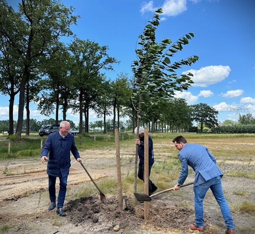 Dagelijks bestuurslid waterschap AA en Maas Peter van Dijk, wethouder gemeente Sint-Michielsgestel Sam Goossens en wethouder gemeente Meierijstad Jan van Burgsteden legden de laatste hand aan de natuurlijke zone met het planten van twee boompjes.