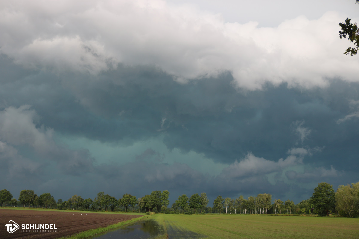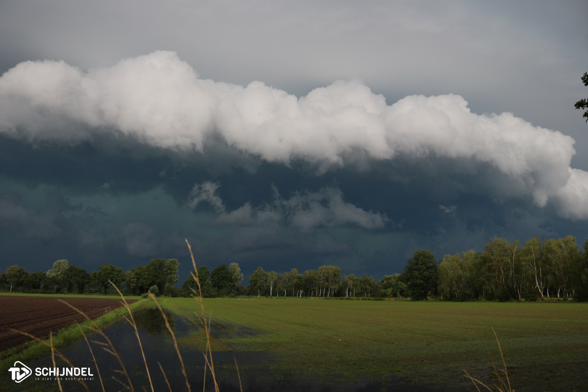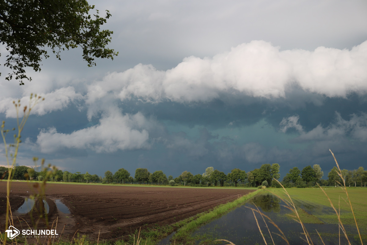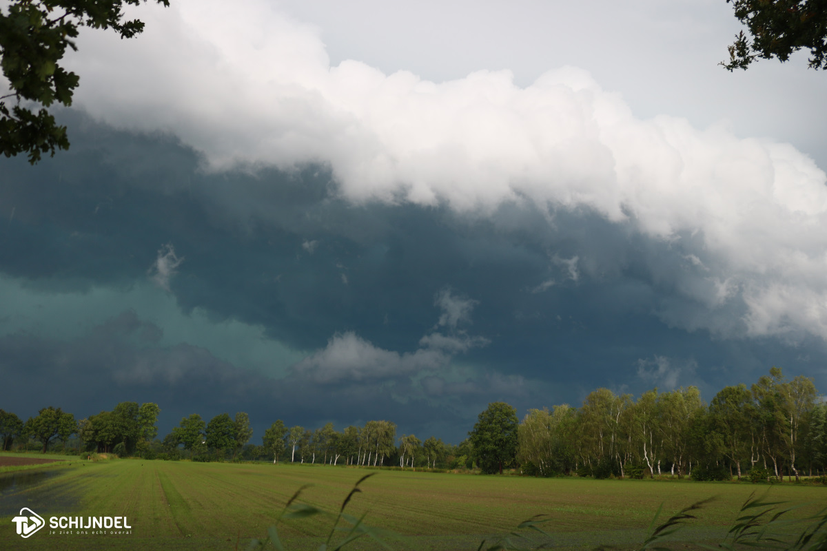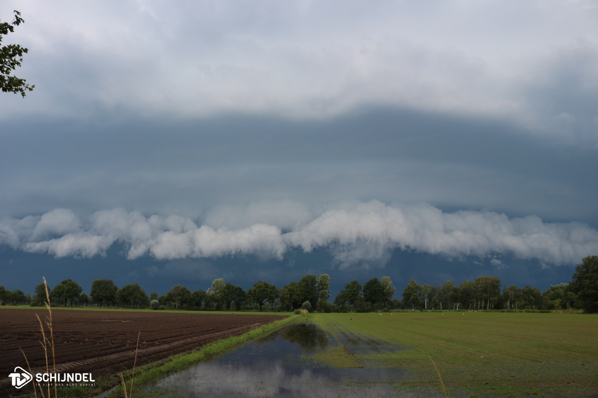 Een grote rolwolk kwam in de richting van Schijndel en enkele minuten later leek het weer avond. Gevolgd door fors onweer en wederom veel regen waardoor weer veel straten blank kwamen te staan.