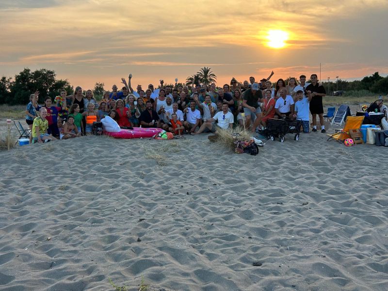 Men stuurde ons een paar foto's van deze happening op het strand met een prachtige ondergaande zon. De sfeer was uitstekend. Hoe mooi is het om elkaar ver van huis op een strand te ontmoeten. Er is ook een video gemaakt van deze dag, deze is hier te bekijken.