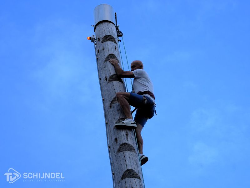 Schijndel - Vrijdagavond was het terrein achter Casa del Arte in Wijbosch weer het strijdtoneel voor het WK Paalklimmen voor de jeugd en op zaterdag werd het een strijd tussen de volwassenen. Het was de bedoeling om zo snel mogelijk op 16 meter hoogte de rode knop aan te tikken.