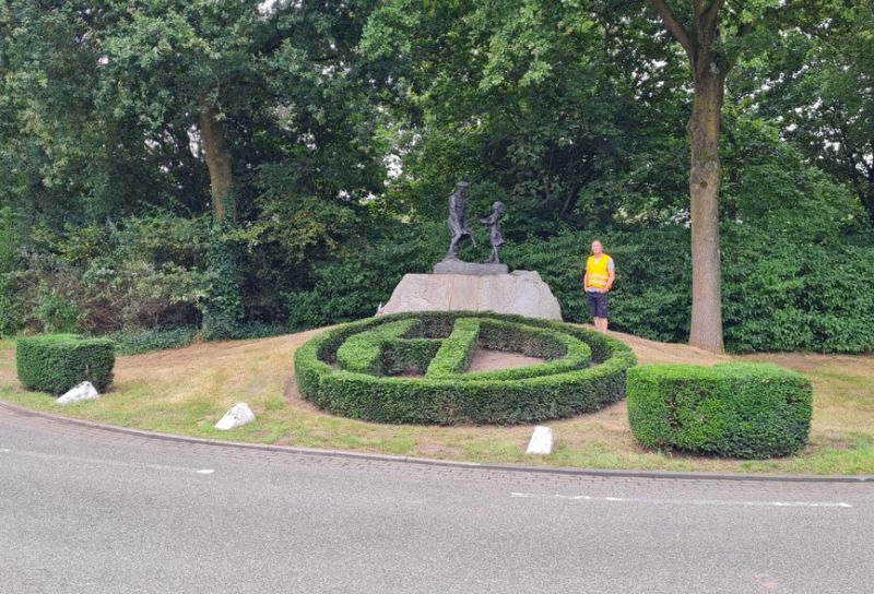 Het door het gilde geadopteerde monument aan de Rooiseweg in Schijndel ziet er weer keurig uit. Er vinden in verband met 80 jaar bevrijding weer diverse evenementen plaats om de bevrijding te vieren. Het Schijndels gilde verricht diverse malen per jaar snoeiwerkzaamheden en zorgt ervoor dat het monument er weer netjes uit ziet. (foto''s: gilde Sint Catharina en Barbara) Het monument staat symbool voor de herwonnen vrijheid en vrede. Een meisje begroet met bloemen een doedelzakspeler uit de Schotse Hooglanden. De slachtoffers worden herdacht, maar er wordt ook naar het heden en de toekomst verwezen. Het gedenkteken benadrukt de noodzaak van het waarborgen van vrede.