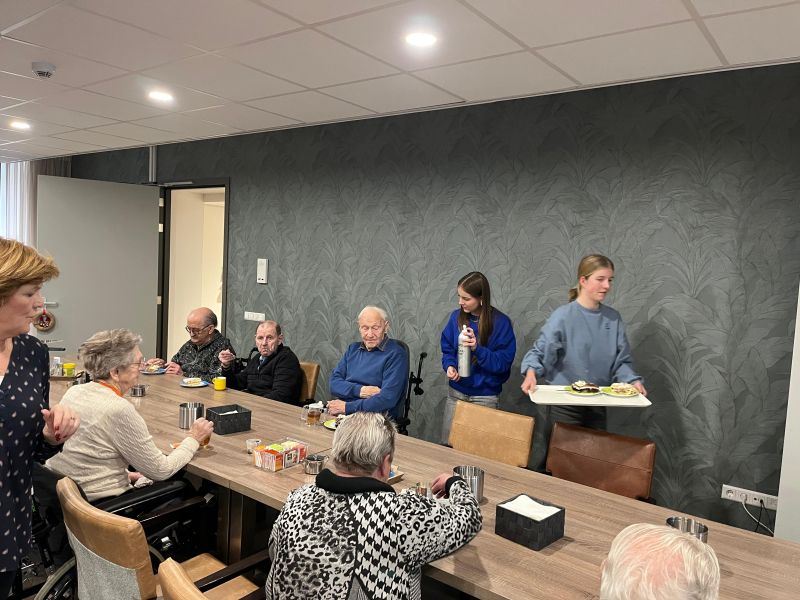 Schijndel - Maandag ochtend 16 december zijn Lynn, Janne en Jente (leerlingen van het Elde College) bij Laverhof geweest om samen met de bewoners taart te eten. Van waar dit initiatief? De dames volgen op school de Ondernemersklas, dit is onderdeel van het vak Bedrijfseconomie.