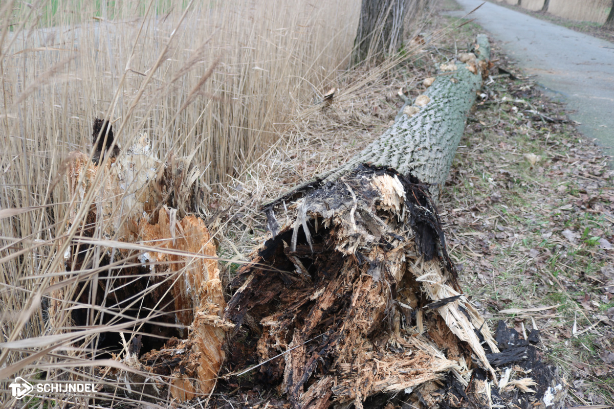 Brandweerlieden hebben de boom naar de berm getrokken en de weg schoongeveegd. Na een kleine tien minuten was de weg weer vrij voor het verkeer. De boom bleek onderin compleet weggerot te zijn.
