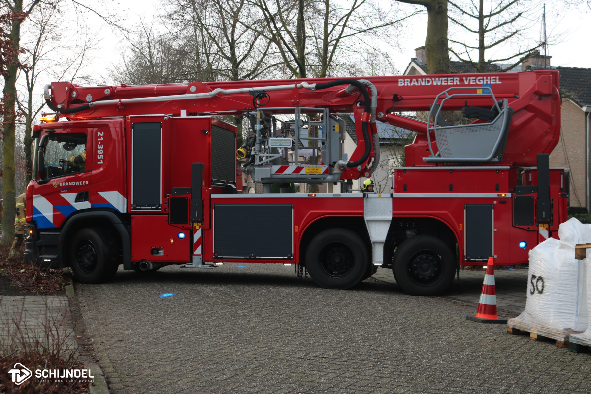 De hoogwerker van brandweer Veghel werd voor de schoorsteenbrand ook opgeroepen, deze werd achteruit op de oprit van de naastgelegen woning gezet. Na een halfuur was de kap van de schoorsteen verwijderd en volgde een controle, daarna werd de schoorsteen ook nog geveegd. Rond half vier was de brandweer nog altijd bezig met het incident.