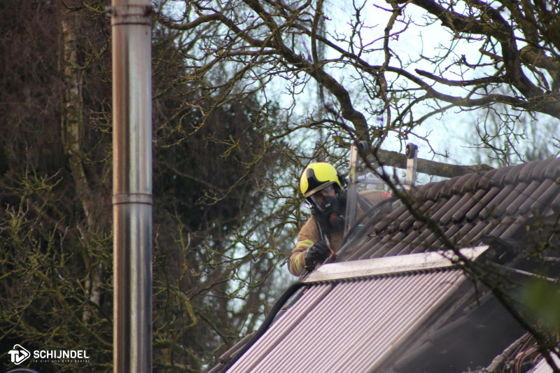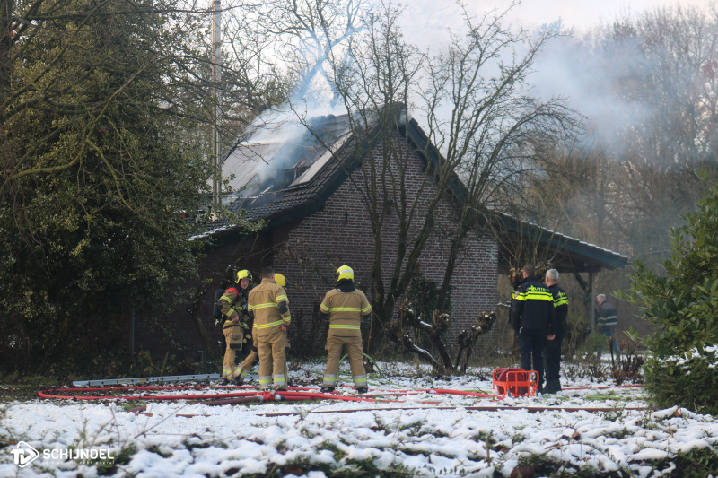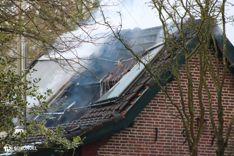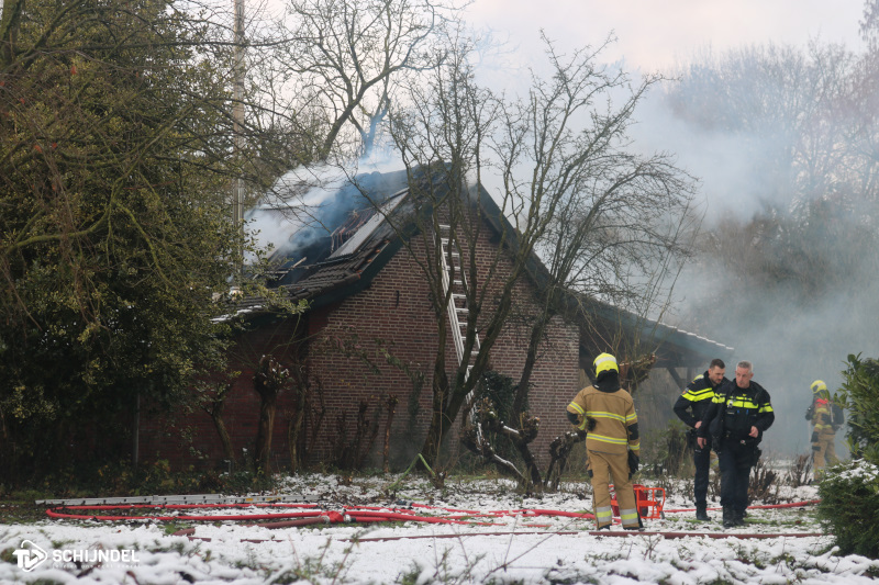 De brandweer was snel met twee wagens aanwezig en was op het moment van schrijven nog volop bezig met blussen. Ook de politie kwam naar de locatie. De schade aan het gebouw is groot, in het dak zit een fors gat. Update: Rond vier uur was de brandweer nog aan het nablussen en sloopwerkzaamheden aan het uitvoeren bij het dak.