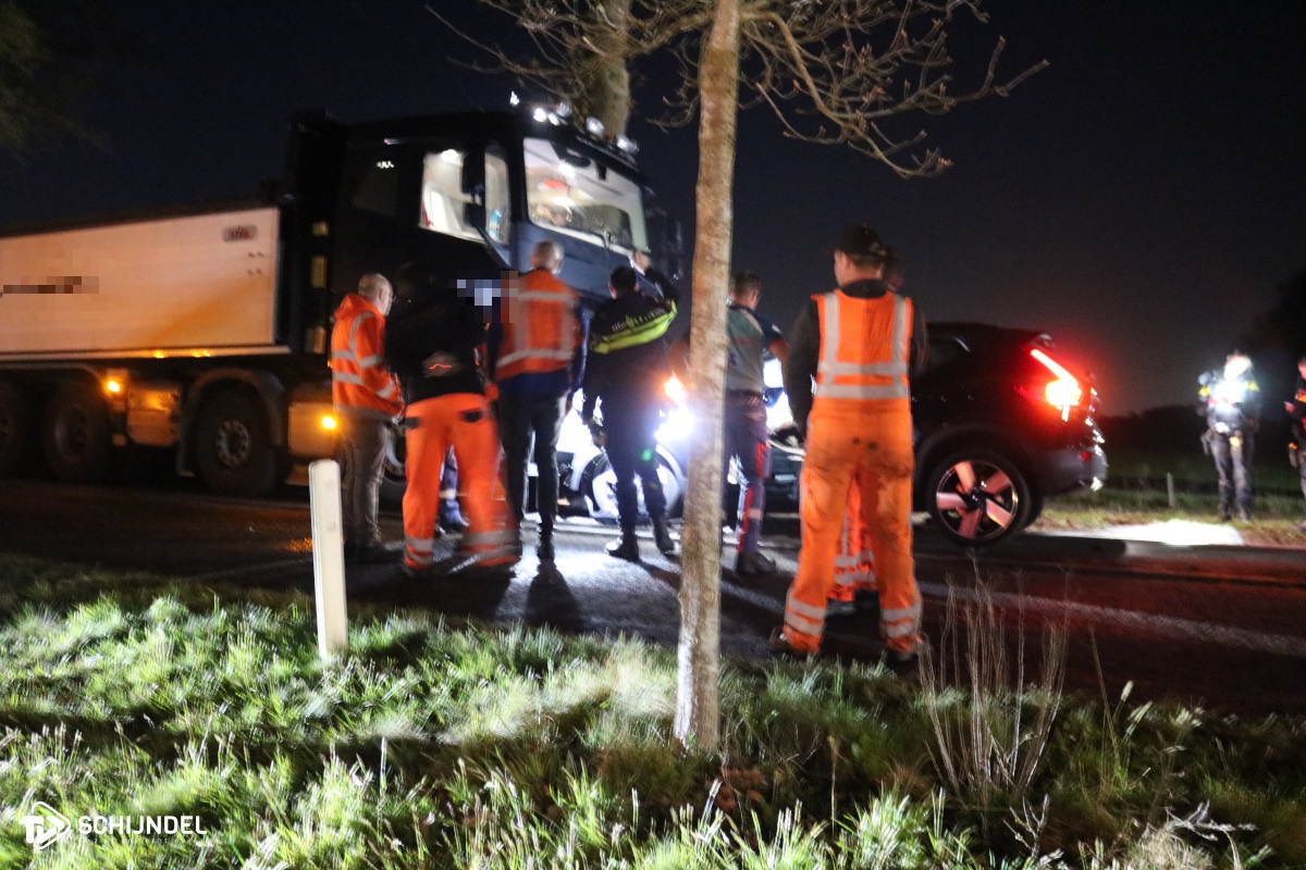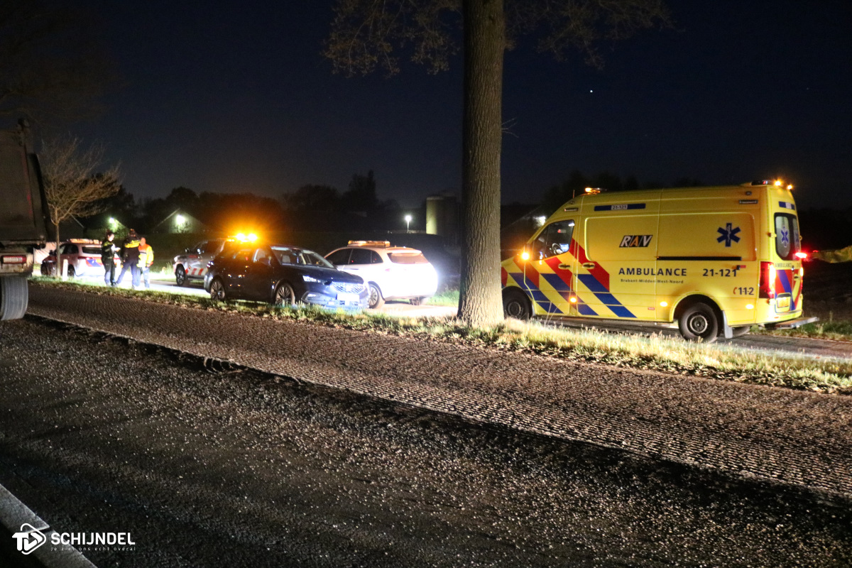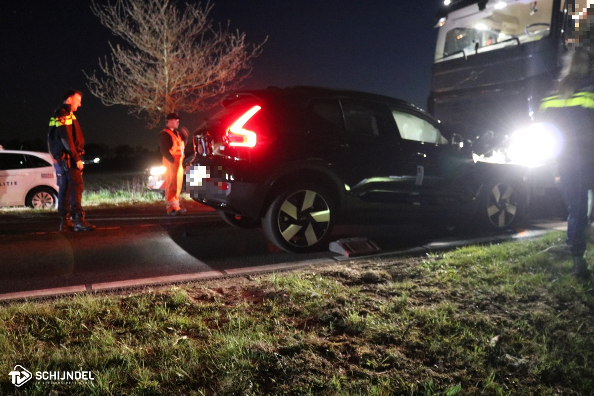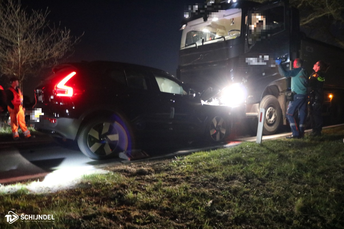 De brandweer, een ambulance en meerdere politievoertuigen kwamen af op het ongeval dat rond half tien plaatsvond. De bestuurder is na een controle in de ambulance meegenomen door de politie, hij bleek onder invloed te zijn. De vrachtwagenchauffeur kwam met de schrik vrij.