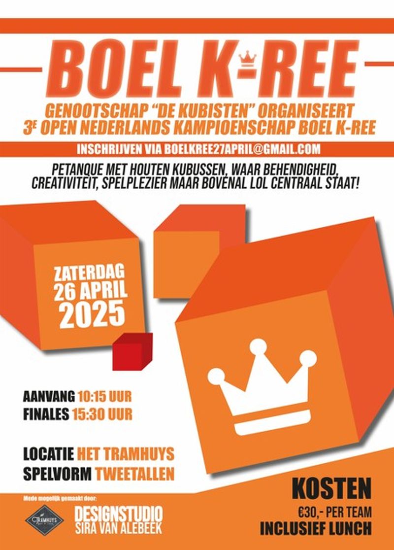 Schijndel - Op zaterdag 26 april, Koningsdag 2025, organiseert het genootschap “DE KUBISTEN” het 3e Open Nederlands kampioenschap BOEL K-REE.