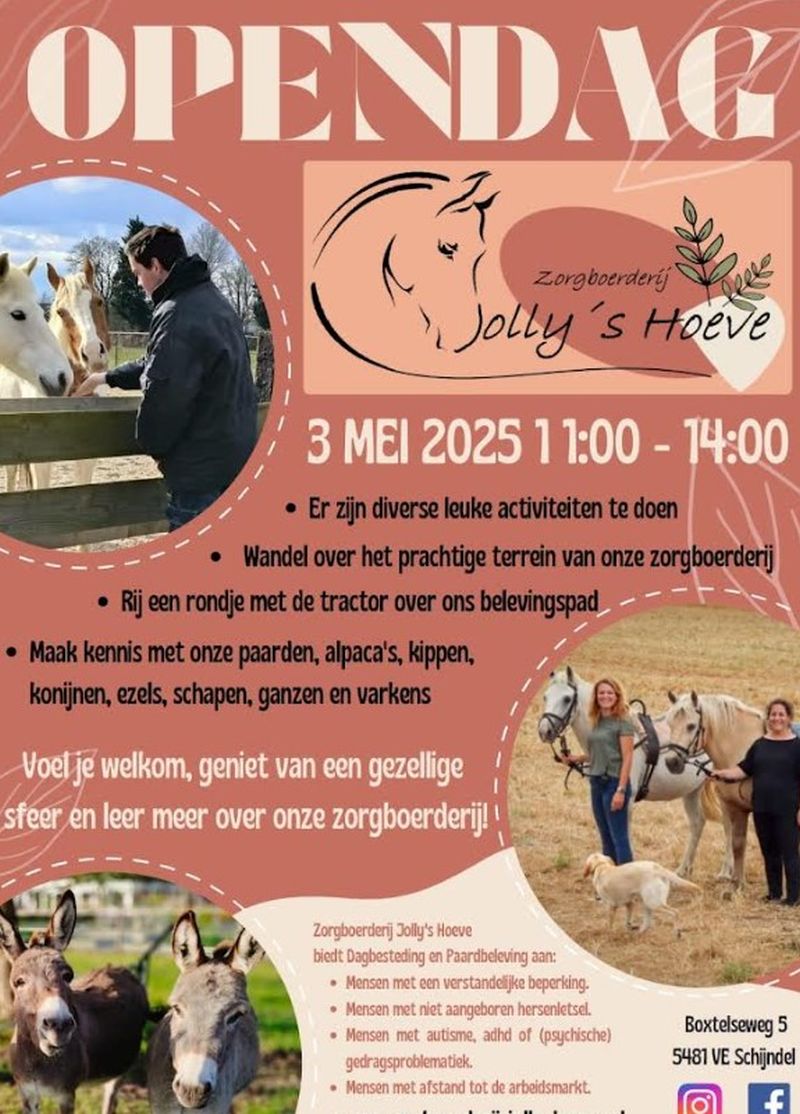 Schijndel - Op 3 mei aanstaande is er een open dag bij zorgboerderij Jolly's hoeve.