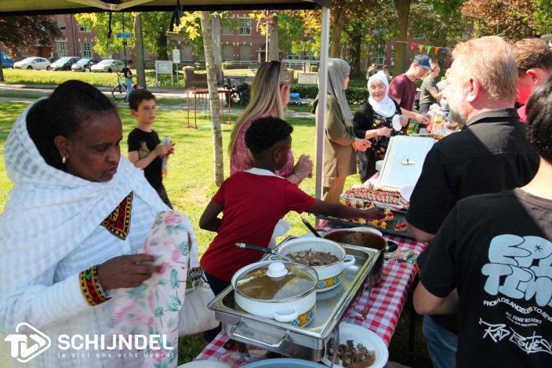 Buurtbewoners uit diverse windstreken zoals uit Syrië en Afrika hadden heerlijke hapjes gemaakt, tot Skendelse worst van Dennis van de Ven en Baklava van de Versmarkt waar jong en oud van genoten heeft.