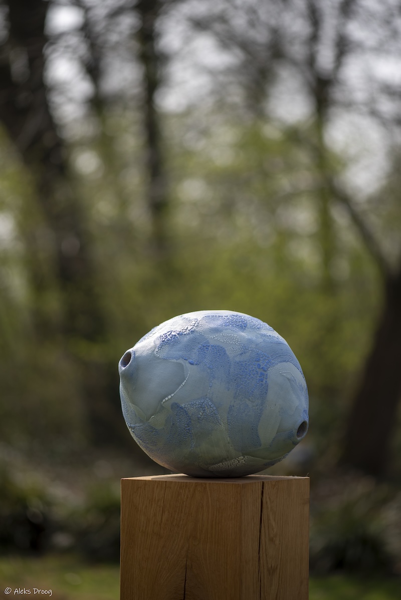 Keramist en landschapsarchitect Marcel Eekhout (1961) woont en werkt in Schijndel, aan deDennensteeg. Het landschap, de natuur en de historie van de plek vormen belangrijkeinspiratiebronnen voor zijn werk. Marcel maakt conceptuele kunst, waarbij het idee om iets teverbeelden altijd de basis vormt. Door middel van experimentele technieken zoekt hij naar dejuiste vorm en materiaal. De grotere landschappelijke werken worden samen met zijn partnerAleks Droog gemaakt onder de naam Parklaan buitengewone projecten. Het werk wordt zowel in binnen- als buitenland geëxposeerd en verkocht. En is nu te zien in de beeldentuinvan Museum Jan Heestershuis. Stuifmeelkorrels; een fantastisch mooi fijnstof Via het imkerwerk van Aleks ontstond het idee om keramische stuifmeelkorrels te makengeïnspireerd op foto’s gemaakt met een elektronenmicroscoop.Stuifmeel is een onmisbaar en fascinerend fijnstof. Elke soort plant en boom heeft stuifmeel met een eigen vorm en kleur. Marcel ontwikkelde de glazuren door veelvuldig te experimenteren. Om een mooie huid te krijgen, worden de korrels soms meerdere kerengebakken, waarbij steeds weer een nieuwe glazuurlaag wordt toegevoegd. Zo wordt elkekorrel een uniek kunstwerk voor binnen of buiten.