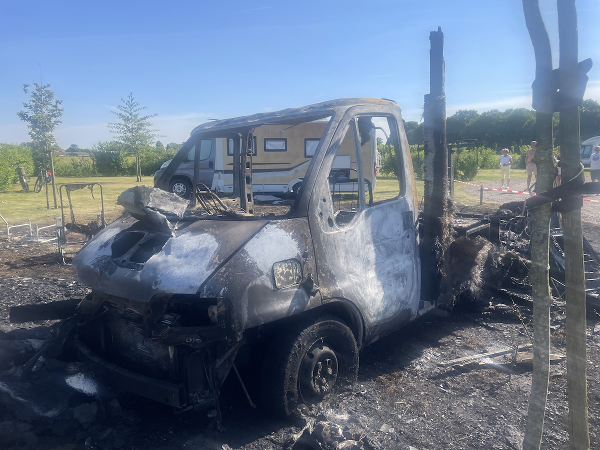 Er waren flinke knallen te horen van exploderende gastanks en de rookontwikkeling was in de verre omtrek te zien (filmpje: 'De Limburger' van 14 mei 2025). Naastgelegen campers zijn haastig verplaatst.