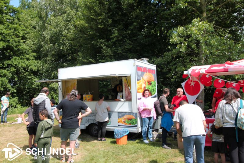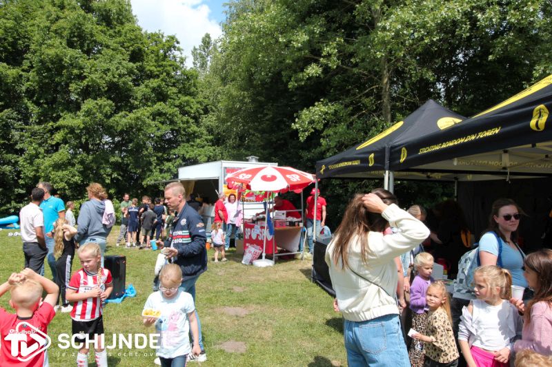 Schijndel - De Woeste Weide aan de Baselaarshoef was op zondag 18 mei door stichting Rondom d'n Toren omgetoverd tot een waar kinder-speelparadijs. Kinderen konden er naar hartelust spelen: diverse spring- en klauterkussens, stokvangen, lasergame, boogschieten, drie-op-een-rij. De kinderen hadden de grootste pret.