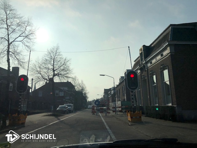 Een dag eerder reed ik nog in Den Bosch waar gemeentewerkers een haag aan het snoeien waren en een weghelft hadden afgezet. Daar werd ik met de hand gemaand om te stoppen en later gewenkt dat ik mocht passeren. In Schijndel pakken we dat veel grootser en serieuzer aan. Niks dorpje met verkeersregelaars, metropool met rood-oranje-groene lampen!