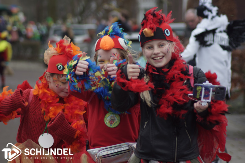 Schorsbos – Vandaag was de 57ste Jeugdoptocht Schorsbos. Het startsein werd om 12.44 uur gegeven door Prins Carlo d’n Urste. Er deden ruin 200 enthousiaste kinderen mee. Het thema ‘Schorsbos veert op’ kwam op verschillende creatieve manieren terug. Ook actuele politieke thema’s, zowel lokaal als landelijk, werden niet geschuwd door de kinderen. Alle deelnemers kregen aan het eind een medaille en een snoepzak. De nummers één in de verschillende categorieën gaan ook nog eens met een mooie beker en de eer naar huis. In de categorie t/m vier personen hebben Juul, Fiene en Thijs van Dam gewonnen. Categorie twee, vijf t/m tien personen, werd gewonnen door C.V. the Date. En 'Binnedur = korter' ging er met de eerste prijs vandoor in de categorie '11 personen en meer'. Na afloop werd er verder gefeest in De Schakel. TVSchijndel deed live verslag van de optocht en bedankt familie Van Look voor de gastvrijheid en het beschikbaar stellen van de ruimte voor regie en live-opnames. Bekijk de beelden in de video, de foto’s in het fotoboek.