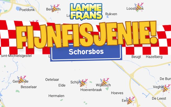 Schijndel - Het is vandaag 11-11 en daarmee is het carnavalsseizoen officieel weer van start gegaan! Dus wij zeggen.. Fijnfisjenie in Schorsbos! Jazeker, deze hit knalde vanmiddag door de speakers met dank aan Omroep Brabant. De zender heeft in samenwerking met Lamme Frans zijn carnavalsnummer 'Fijnfisjenie' (in Brabant) per dorp aangepast naar de eigen carnavalsnaam. Ook Wijbosch ('t Weppus) heeft een eigen versie gekregen! Op de website Fijnfisjenie.nl kan je deze aangepaste hit nu beluisteren en downloaden. Onder 'lees meer' zie je de videoclips.