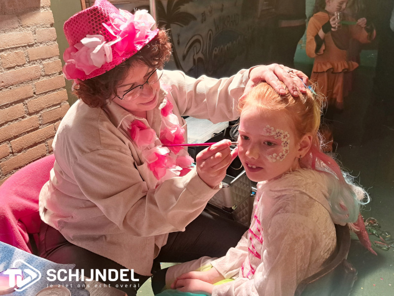 Ook kwam Linda weer naar de Bloemenwijk om kinderen te schminken. Zodra ze haar koffer had geopend, meldden zich de eerste kinderen om zich door Linda prachtig mooi te laten versieren. Later op de dag maakte Patty Confetti er nog een leuk feestje van. En er kwam ook nog een heuse Minion op bezoek in de gymzaal.