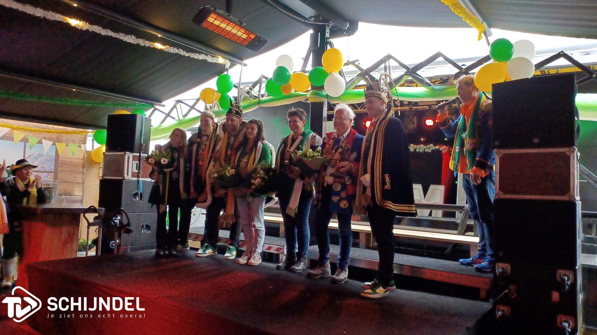 Schorsbos - Vanmiddag werden, aansluitend aan de proclamatie van de Prins en de sleuteloverdracht, de onderscheidingen door Prins Maikel d'n Urste van Schorsbos uitgereikt. De onderscheidingen zijn een traditionele happening op de carnavalszaterdag. Nadat Prins Maikel zijn Elf 'regels' voor Schorsbos had gemeld aan het publiek was het tijd voor de onderscheidingen