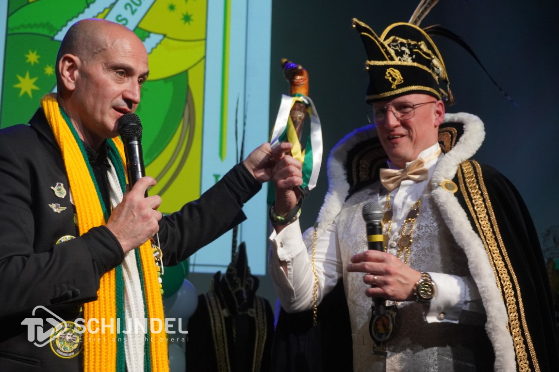 Zijn Raad van 37 zong samen met de oud adjudanten en hofdames een speciaal danklied voor hem. Harrie van Herpen onthulde het nieuwe embleem voor Schorsbos dat meteen in de verkoop ging! Rond kwart voor tien werd tijdens een spectaculaire act van CV de Plekkers de nieuwe Prins Mari d'n Urste onthuld. In het fotoboek is een uitgebreide fotoserie te vinden. Beelden van de avond in de video.