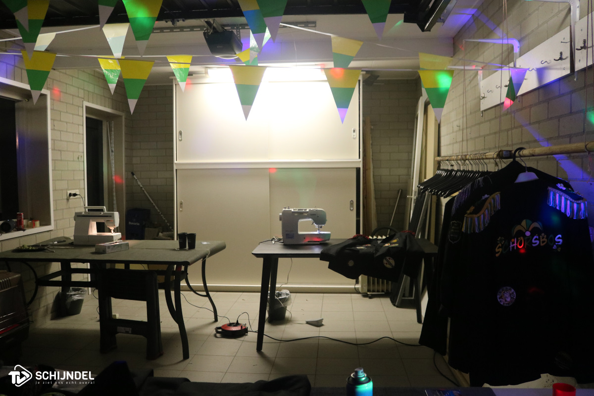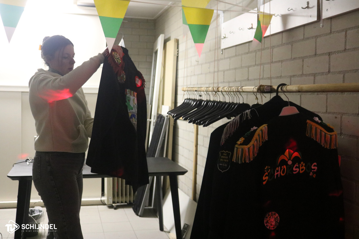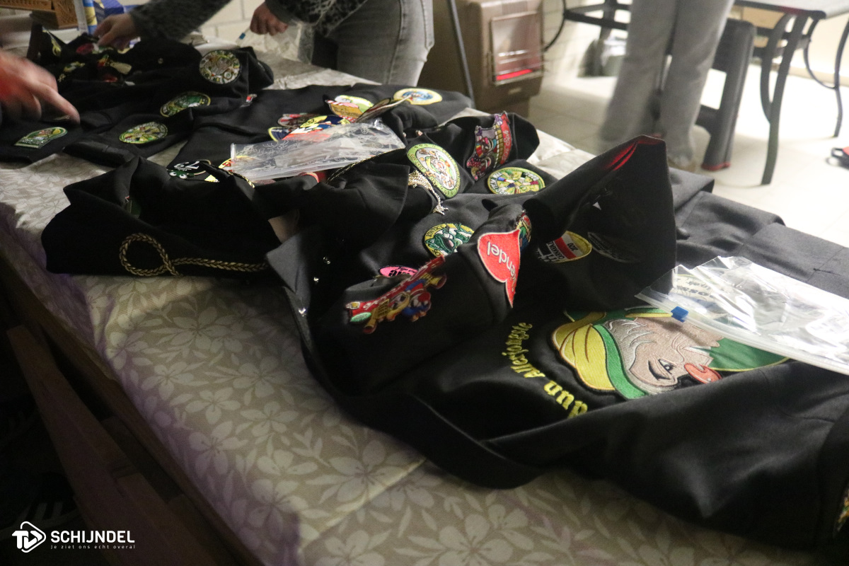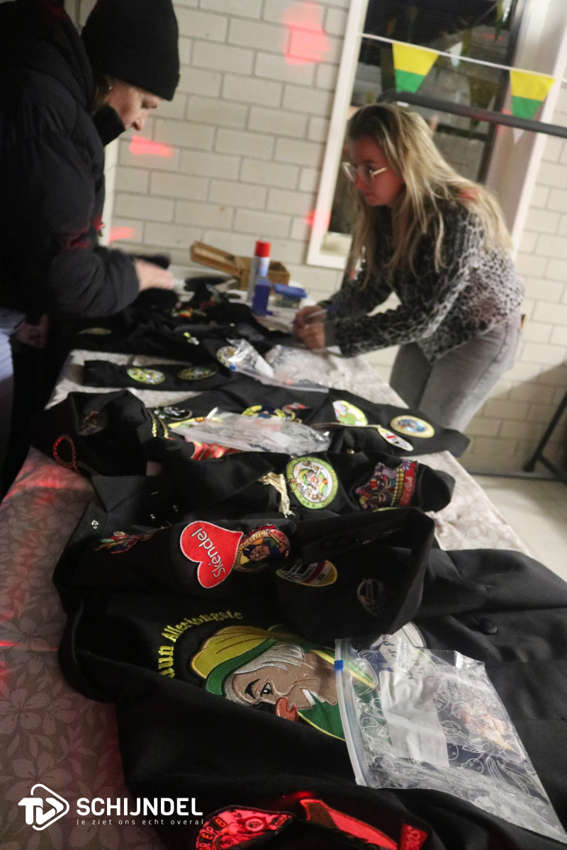 Schorsbos - Ze naaiuh de emblemen op oew jéske! Dn Opnaaisters, Tess & Lieke, stonden op dinsdagavond voor de eerste keer klaar voor alle carnavalsvierders in Schorsbos. Het was een geslaagde eerste avond.