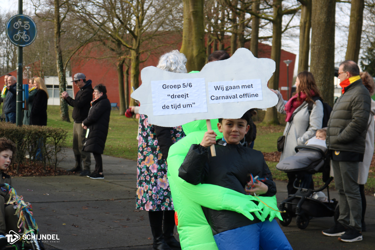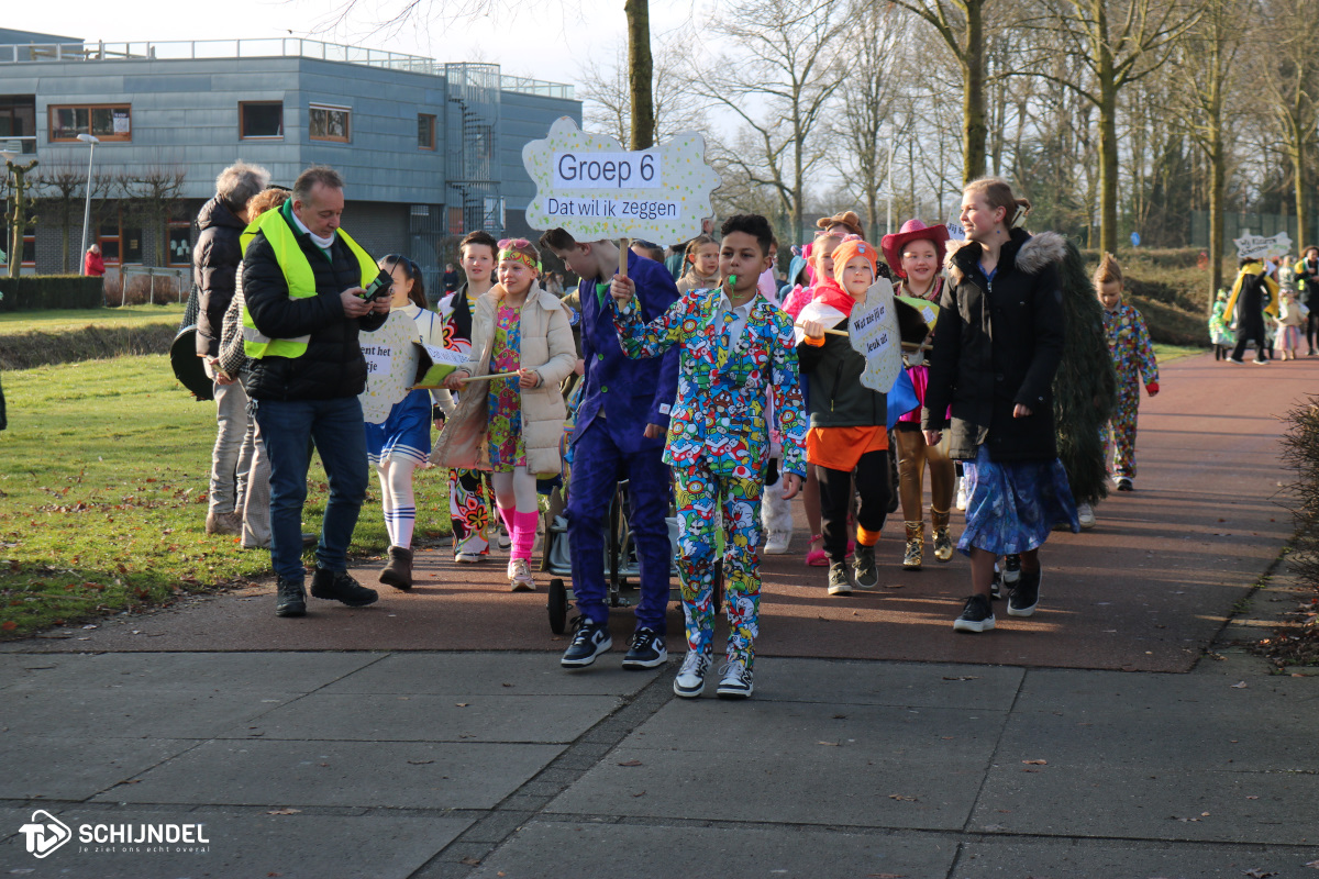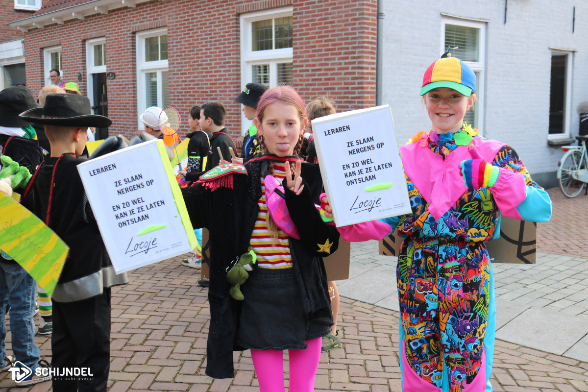 Enkele ouders hadden ook confettikanonnen meegenomen waardoor het echt een feestje werd! Vanaf de Heijcant trok een bonte stoet richting het centrum. Na een rondje rondom de Glazen Boerderij trok de stoet weer terug richting de school. TVSchijndel was LIVE op de Markt, in het fotoboek is een uitgebreide fotoserie te vinden.