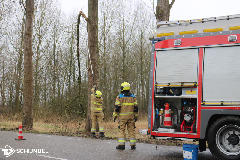 Schijndel - De brandweer van Schijndel werd vandaag rond tien voor een in de middag opgeroepen voor stormschade aan de Steeg. Ter plaatse bleek bij een boom een forse tak afgebroken te zijn en nog een klein beetje vast te hangen aan de boom.