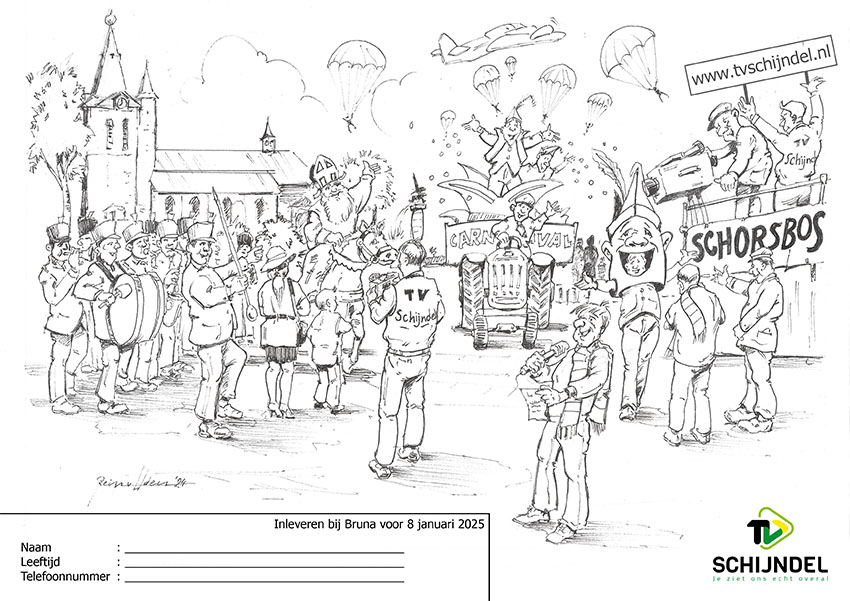 Schijndel - Houden je kinderen van kleuren? Goed nieuws! Speciaal voor TVSchijndel heeft Rein van Uden een mooie kleurplaat gemaakt waarin typisch Schijndelse elementen zijn verwerkt. Deze kleurplaten liggen vanaf zaterdag 30 november bij Bruna in de winkel. Je kunt de kleurplaat ook hier downloaden en zelf uitprinten.