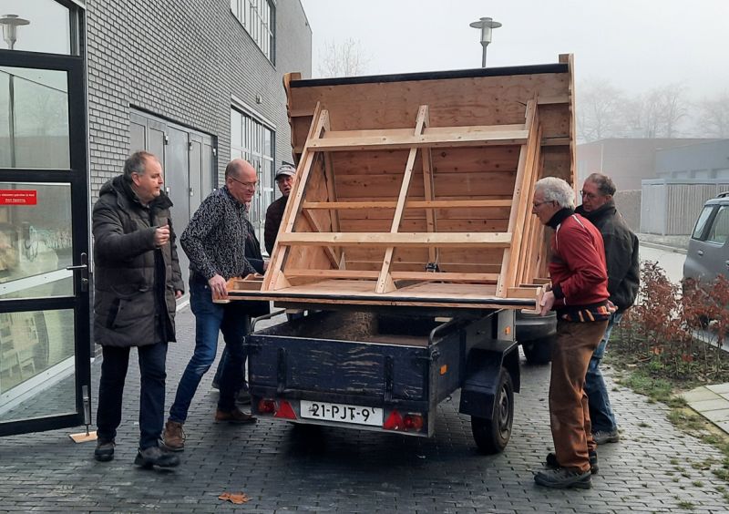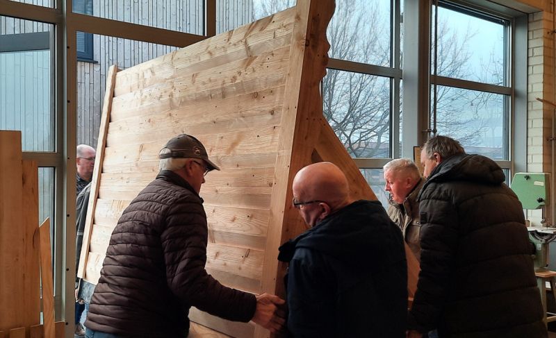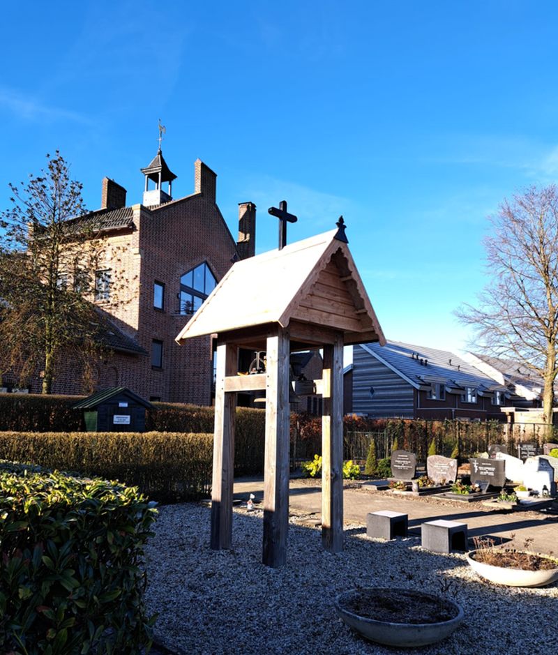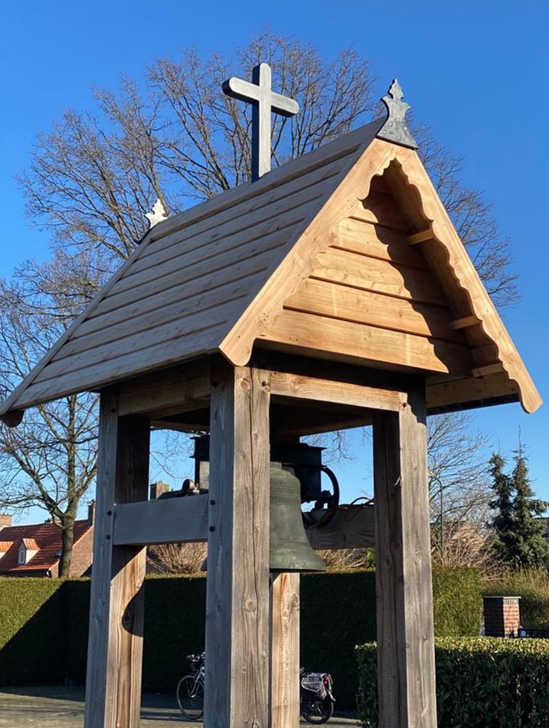 Schijndel - Bij Welzijn De Meierij kwam een tijd geleden een vraag binnen of ze een dakje zouden kunnen maken voor een klokkenstoel. Deze klokkenstoel staat op de begraafplaats in het Wijbosch. Nadat deze vraag bevestigend beantwoord werd, regelden de beheerder van het kerkhof Piet van Bilsen en vrijwilliger Rien van der Heijden het benodigde geld en werkplaats De Sok van Welzijn de Meierij maakte een keurig dakje. En met een kraan van Jeroen Bestebreurtje kon het dakje geplaatst worden.