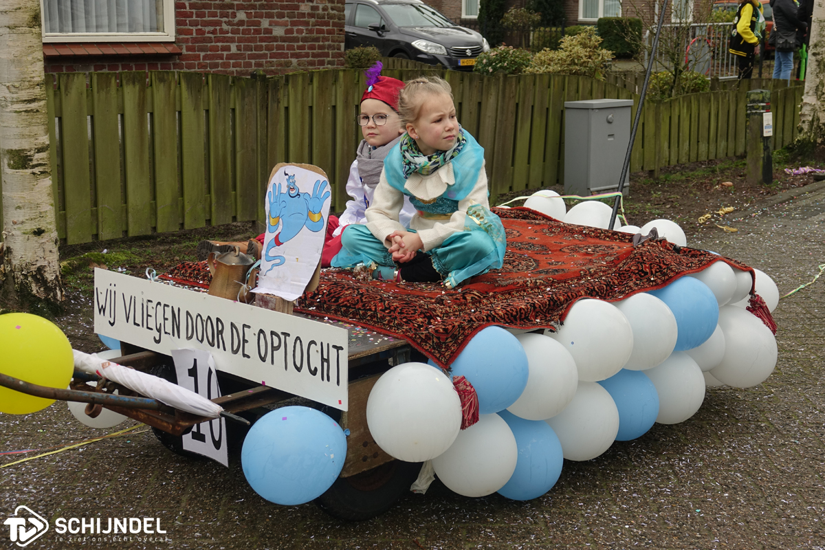 Schorsbos - Vanmiddag was de jeugdoptocht in Wijbosch. om 12:44 uur vertrok de stoet bij de 'shared-space-zone' bij De Schakel. Via de Eerdsebaan, Broekkantsdijk, Klaverwei en Boomstraat trok de optocht door Wijbosch om uiteindelijk weer bij De Schakel te eindigen. Jeugdprins Jip Smits, Jeugdprinses Finn Verouden, Adjudant Jelt Verhoeven, Hofdame Moon Dortmans van Eerde (Oiver) en hun gevolg gingen voorop op hun prachtige Prinsenwagen.