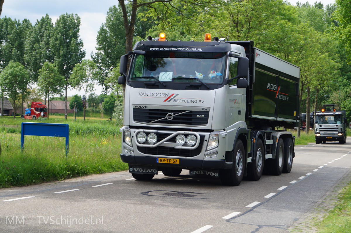 Schijndel - Chauffeurs Vereniging Schijndel [CVS] organiseerde vandaag voor de 17e keer de Truckrun. De tweejaarlijkse Truckrun is een bijzondere tocht met vrachtauto's door Schijndel en omgeving. 157 aanmeldingen zorgden vandaag voor een enorme stoet die om 12.00 uur vanaf de Van Leeuwenhoekweg ging rijden. Marco Voets, verantwoordelijk organisator, is erg blij met de enorme opkomst. "Eerst begonnen we met 100 aanmeldingen. Daarna kregen we telefoontjes van mensen die toch graag mee willen rijden. Zelfs deelnemers die al 16 jaar meedoen kregen we aan de telefoon, of er niet toch nog een plekje vrij was! Toen hebben we 150 deelnemers toegelaten en uiteindelijk rijden er vandaag toch 157 mee", aldus Marco Voets. Langs de kant stonden tijdens de gehele tocht honderden mensen. "Wat een prachtige dag ook!", aldus een kijker op de Steeg. "En zie ze eens lachen! Dit is heerlijk om te zien!". TVSchijndel was LIVE bij de start. Onderweg hebben we een fotoreportage gemaakt, deze is te vinden in het Fotoboek. Beelden van de route (start en op de Steeg) in de video.