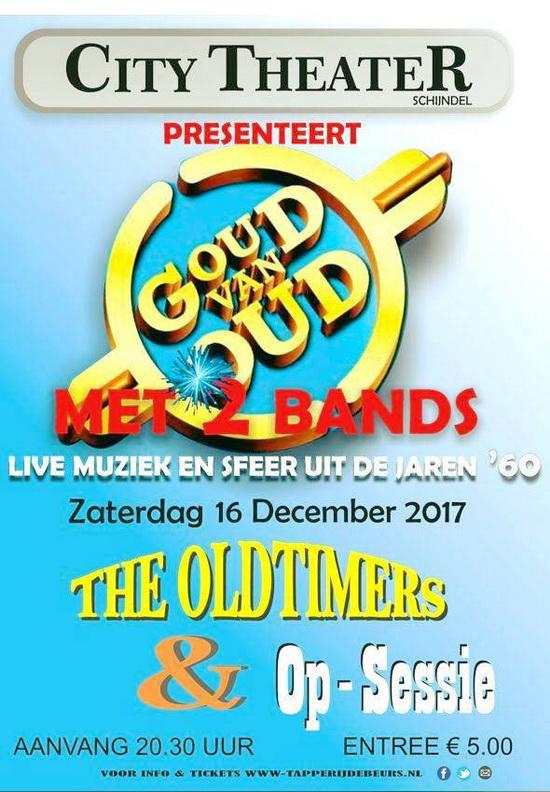 Schijndel - In het City Theater wordt op zaterdag 16 december een 'Goud van Oud-avond' georganiseerd met muziek uit de jaren '50, '60 en 70 met optredens van 'The Oldtimers' en 'Op-Sessie'. De band The Oldtimers is opgericht in 2006. Na enige wisseling is de bezetting sinds 2007 stabiel met artiesten die in het verleden ruimschoots hun sporen hebben verdiend en deel uitmaakten van bands als 'The Dynamite Shadows', 'Hot Dog' en 'The Rocking Nightcats'. Op-Sessie is een band voor een complete avond rock 'n roll, country en ballads uit de jaren '60 en '70. Een band met louter geroutineerde muzikanten, die het hebben van plezier voorop stellen. En dat met muziek uit de tijd dat musiceren nog om bezieling ging. Hieronder kunt u lezen hoe u aan kaartjes kan komen.