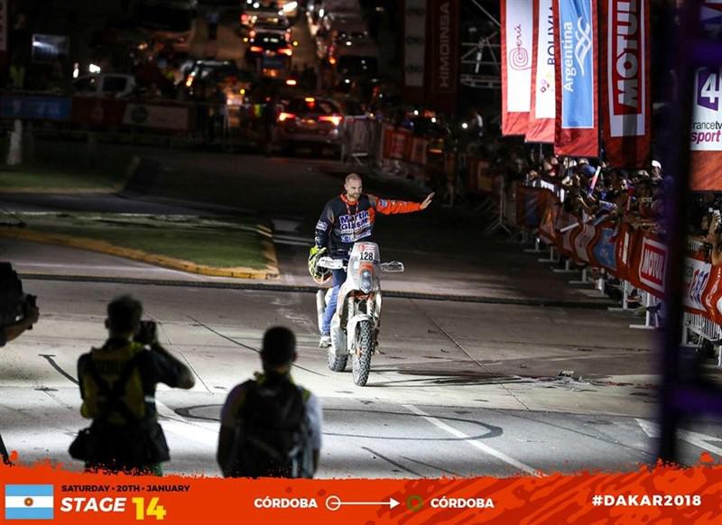 Schijndel - Maikel Smits deed mee aan de Dakar Rally om plezier te hebben en te genieten. Dat is gelukt, en als bonus behaalde de rookie de 26ste plaats, waarmee hij als beste Nederlander zijn medaille mocht ophalen aan de eindstreep in Córdoba. “Ik ben heel blij met hoe het is gegaan.” De veertigste editie van de Dakar Rally gaat de boeken in als in elk geval de zwaarste van de laatste tien jaar. Die volbrengen, was al een prestatie op zich. 54 van de 139 in Lima gestarte motorrijders haalden de finish in Córdoba niet. Smits daarentegen kwam geen moment in de problemen en staat nog opvallend fris en fit aan de eindstreep. (foto: Facebook Maikel Smits Dakar 2018)