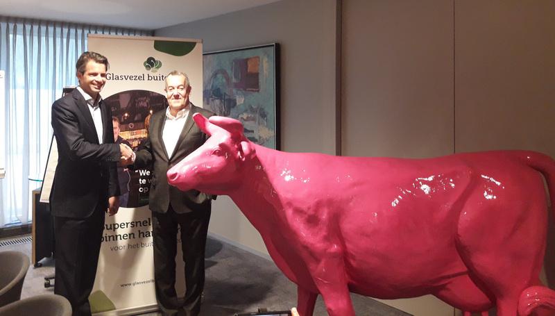 Meierijstad – Gisterenmorgen is in het gemeentehuis in Veghel door wethouder Harry van Rooijen en directeur Michiel Adminiraal van Glasvezel buitenaf* (voorheen Mabib) het startsein gegeven voor de glasvezelcampagne in Meierijstad. Vanaf 19 februari kunnen de inwoners van Meierijstad zich inschrijven voor een glasvezelaansluiting. Zij kunnen hiervoor terecht bij Glasvezel Buitenaf. Deze nieuwe organisatie heeft verder geen gevolgen voor het aanbod en de voorwaarden richting de inwoners en bedrijven in het buitengebied van Meierijstad. Als minstens 50% van de inwoners en bedrijven zich aanmeldt tijdens de inschrijfperiode tussen 19 februari en 7 mei 2018, krijgt de aanleg van het glasvezelnetwerk groen licht. * Mabib en Glasvezel buitenaf, die al langere tijd samenwerkten, gaan vanaf gisteren verder onder de naam Glasvezel buitenaf.