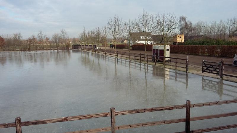 Schijndel - Voor alle schaatsliefhebbers heeft familie Van den Oetelaar van Manege de Molenheide aan De Heikampen 5 in Schijndel het initiatief genomen om hun buitenpiste vol water te laten lopen. Hierdoor is er dankzij de vorst van de afgelopen dagen een aanzienlijke ijsbaan ontstaan. Het laatste nieuws is dat het ijs nog iets te dun is voor vandaag en de brandweer gevraagd is om nog een laagje water op de baan te spuiten. Dat komen ze vandaag doen en dus wordt er morgen gehoopt op een betere baan. Iedereen is welkom om vanaf morgen, dinsdag 27 februari, op eigen risico te komen schaatsen op dit natuurijs. Foto's TVSchijndel