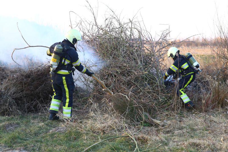 Schijndel - Woensdagmiddag werd de brandweer gealarmeerd voor een buitenbrand op een akkerland langs de Boxtelseweg (N618) bij Schijndel. Na wat speurwerk hadden de Schijndelse brandweerlieden een pad gevonden die tot het perceel liep waar de brand woedde. Terwijl enkele brandweerlieden vast begonnen waren om het losse snoeihout van de brandstapel te trekken, reed het blusvoertuig zich vast. Een tweede eenheid (met een 4x4 voertuig) vanuit Boxtel bood de helpende hand. Enkele foto's onder 'lees meer'. (Foto's en info: Persburo Sander van Gils)