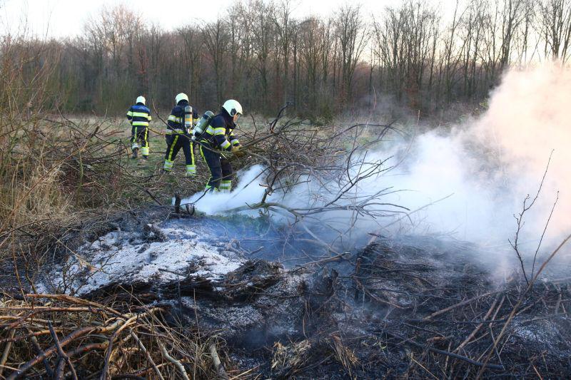 Nadat het Schijndelse blusvoertuig was losgetrokken heeft men de restanten van de grote brandstapel afgeblust met water. Omdat er momenteel niet gestookt mag worden kwam ook de politie ter plaatse. Zij onderzoeken wie eigenaar is van het perceel en wie de brandstapel heeft aangestoken. Nadat het vuur was gedoofd keerde alle eenheden weer terug.
