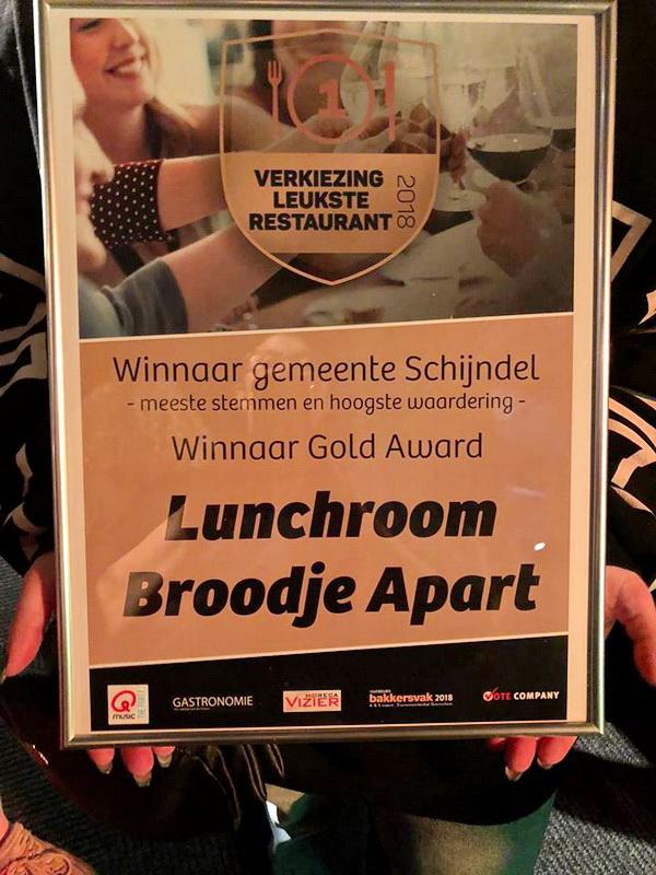 Schijndel - LunchroomBroodje Apart is erin geslaagd een Gouden Award te winnen bij de verkiezing van het leukste restaurant van Nederland 2018. Ze behaalden de meeste stemmen en de hoogste waardering. In juni ontving het team van Broodje Apart ook al een Award, namelijk de Bronzen Award bij de verkiezing van het leukste restaurant van Nederland 2017. Broodje Apart is een bijzondere vorm van een (re)-integratiebedrijf waar mensen, met name jongeren, met een functiebeperking en een grote afstand tot de arbeidsmarkt, worden opgeleid voor een betaalde of gesubsidieerde baan in de horeca of dienstverlenende sector. TVSchijndel feliciteert hen van harte met het behalen van dit mooie resultaat! Bron: tekst en foto's Broodje Apart