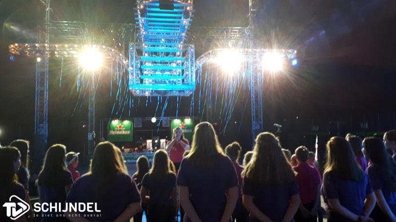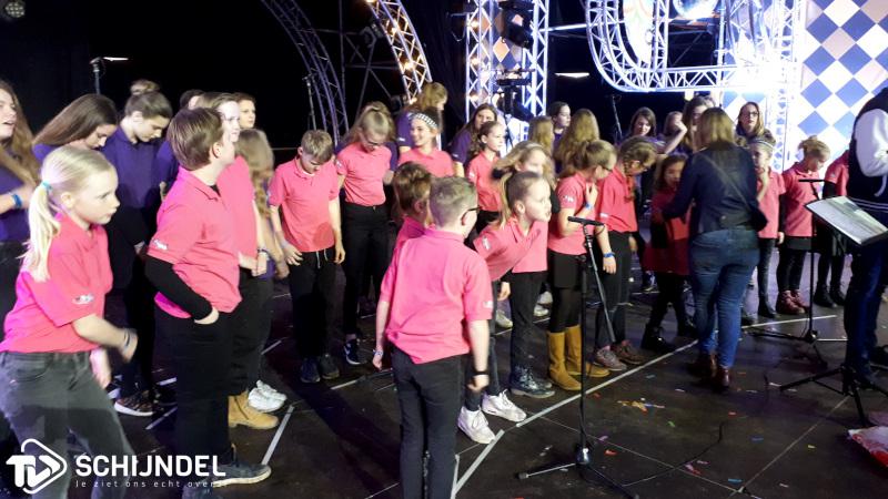 Schijndel – Na wekenlange voorbereidingen en extra langere repetities stond kinderkoor No Kidding zondag op Paaspop. De kinderen kwamen rond twaalf uur in de middag aan en begonnen aan de voorbereidingen, waarna rond 14.00 uur de soundcheck begon. Om 16.00 uur barstte het optreden los: vele honderden mensen gingen los op de muziek die het kinderkoor had uitgekozen om te zingen. Om vijf uur mocht het koor op de foto met niemand minder dan Guus Meeuwis. |