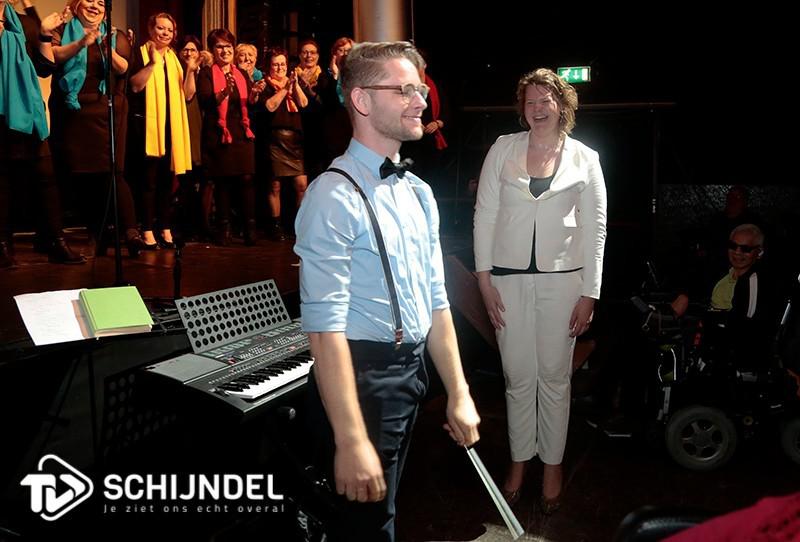 Schijndel - Terwijl buiten op de Hoofdstraat tientallen fietsers en wandelaars genoten van het lentezonnetje, zag binnen het publiek in het goedgevulde City theater dat popkoor No Nonsense afscheid nam van hun dirigent Kiki Schippers.Na vijf jaar stopt de dirigent en gaat ze verder in de wereld van de kleinkunst. Het koor had een speciaal afscheidsconcert georganiseerd om Kiki uit te zwaaien. Tevens werd de nieuwe dirigent Marc van Creij voorgesteld aan het publiek.Het publiek genoot van de nummers die Kiki en het koor brachten voor de pauze. De beweeglijke dirigent, die haar hele lichaam laat mee dirigeren, had het No Nonsense niet al te gemakkelijk gemaakt. Zelfs twee weken voor het concert werd er nog een nieuw nummer ingestudeerd. Vlak voor de pauze gaf Schippers het dirigeerstokje over aan de uit den Bosch afkomstige Marc van Creij. Van Creij heeft zijn roots in de musicalwereld, en heeft onder meer gespeeld in Jesus Christ Superstar en Evita van het Brabants Muziek-Theater. Van Creij over zijn dirigentschap bij No Nonsense: "Ik ben een andere dirigent dan Kiki. Ik zal het dirigeerstokje zeker nu nog niet gaan gebruiken." Van Creij heeft al enkele weken met het koor mogen werken."Het koor zal moeten wennen aan het feit dat ik graag met bladmuziek werk. En ik ben niet zo'n beweeglijke dirigent zoals zij die gewend zijn". Hij heeft er veel zin in om het popkoor No Nonsense te gaan dirigeren.