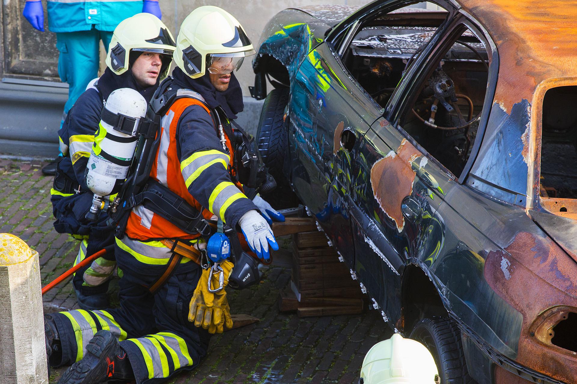 Eenmaal ter plaatse trof men een enorme ravage aan. Terwijl er snel geschakeld moest worden was men in eerste instantie druk doende met de reanimatie van de aangereden voetganger en het doven van de autobrand. Omdat meerdere eenheden werden ingezet kwam ook de OVD (Officier van Dienst) van het spelende wedstrijdteam ten tonele om de gehele inzet te coördineren. Nadat het vuur was gedoofd en bij het uitgebrande voertuig een noodstabilisatie was gemaakt kon met behulp van de bemanning van de reeds ter plaatse gekomen hoogwerker de inmiddels om hulp schreeuwende ex van boven uit de kerk in veiligheid worden gebracht. Maar wanneer deze de kans zag wist hij uit de handen van de hulpverleners te blijven.