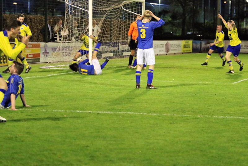 Na de rust werd de niet geheel fitte Stan Guns vervangen door Dani van Wijk. De wedstrijd gaat verder met het overwicht voor Schijnde/DeWit zoals voor de rust en in de 49e minuut voorkomt de keeper van Taxandria een doelpunt door het schot van Jirre Kreemer te pareren. Even later krijgt Freek van Venrooy van Taxandria zijn tweede gele kaart en moet vertrekken. Schijndel/DeWit blijft gaan voor de overwinning en in de 58e minuut wordt een mooie voorzet van Tommy van Schijndel door Kaj de Visser afgerond en hij brengt de stand op 2-1. In de 71e minuut begaat Thomas Jan van Raaij een onnodige overtreding wat ook met geel bestraft wordt en zowaar gaat de vrije trap die hierop volgde naast de muur in het doel en de stand is 2-2. Een teleurstelling van de thuisclub en de trainer van Taxandria wisselt nog twee spelers om deze gelijke stand te handhaven. Ook de thuisclub wisselt Bas Wagenaars voor Jordy van Kasteren en Jordy Broks voor Jirre Kreemer. Schijndel/DeWit zet alles op alles en de moed wordt beloont als Jordy Broks een perfecte voorzet aflevert en deze wordt door Martijn van Grinsven prima in gekopt 3-2. De ontlading was groot na de wedstrijd en gezien het verloop van deze ontmoeting ook dik verdiend. Foto ontvangen van Schijndel/De Wit