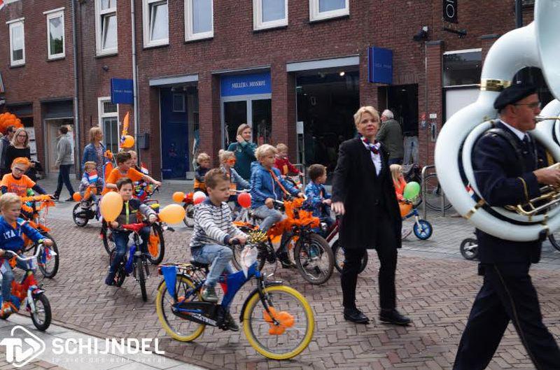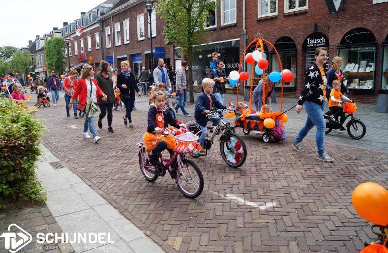 Schijndel - Ook dit jaar bood Schijndel weer diverse activiteiten in het kader van Koningsdag, onder andere een optocht met versierde kinderfietsjes. Die reden een tocht door het dorp, onder de klanken van Harmonie St. Cecilia die hen voorop ging. Op het parkeerterrein aan de Oude Steeg was er weer een vrijmarkt voor de kinderen en konden ze deelnemen aan allerlei spelletjes. Er stonden twee springkussens en een draaimolen. In de tent op het parkeerterrein werd er muziek gemaakt door de band 'De Oldtimers'. Het was, al met al, een gezellige boel. In het fotoboek is een uitgebreide fotoreportage te vinden. Beelden in de video.